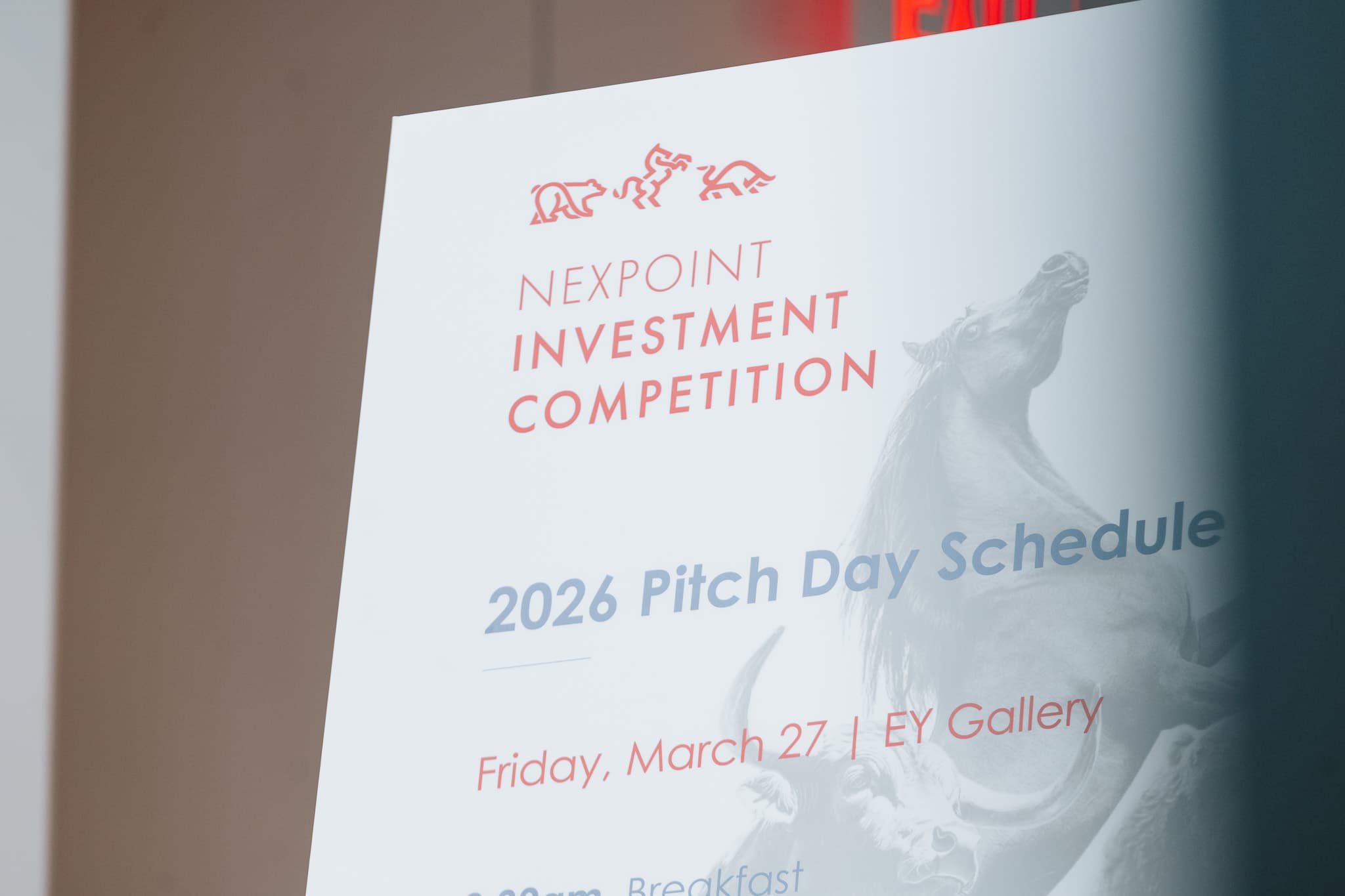 The 2025–2026 NexPoint Investment Competition has officially come to a close. Congratulations to all of our participants for a fantastic year of competition, and a special thank you to everyone who made it to Pitch Day. We look forward to seeing you again for the 2026–2027 competition!